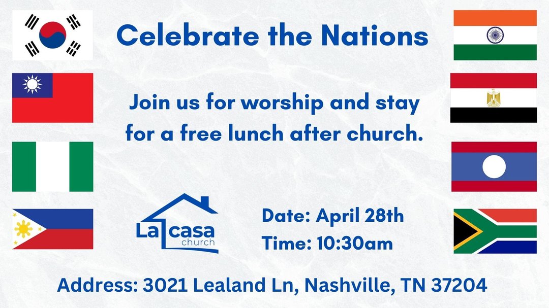La Casa is a non-denominational, multicultural, and bilingual church in Nashville. We are a community where Spanish and English speakers come together for prayer, worship, discipleship, and fellowship. Established in 2019, La Casa church has grown into a diverse congregation, representing 29 different nations. As a church, we worship together, grow together, and do life together. We value relationships and are intentional in fostering an inclusive community where everyone feels welcome. Our bilingual worship service takes place every Sunday from 10:30 AM to 12 noon at Sevier Park, 3021 Lealand Ln, Nashville. It's a wonderful time of fellowship and worship that we'd love for you to join.